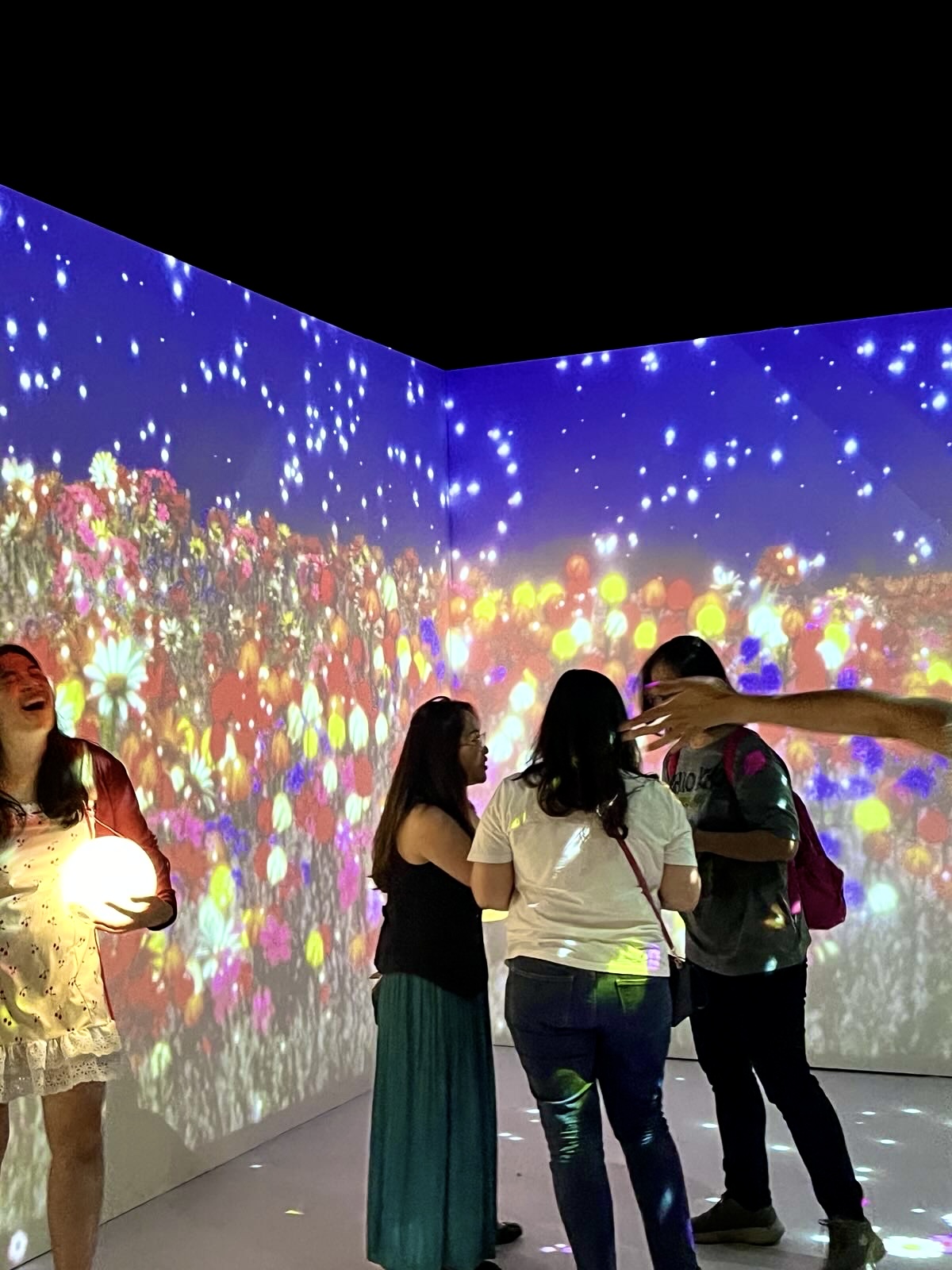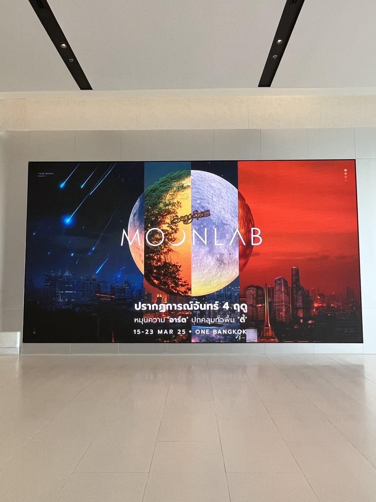 Wo ist das zentrale Forum? Ein Pförtner zeigt, wo der Weg langgeht, verweist auf einen Shuttle, der die Gebäude verbindet. Ne, ab zu Fuß. Sind nur zwei, drei Minuten. Das Forum stellt sich als modernes, architektonisch innen wie außen minimalistisches, vielstöckiges Gebäude heraus. Die ausgewählte Ausstellung des Moonlab im vierten Stock. Übermorgenland. Der Blick nach draußen zeigt auf ultramoderne Hochhäuser und dazwischen schon angeranzte Wohnblöcke der „anderen Art“. Eine ganz liebe junge Thailänderin hilft uns beim Online-Buchen der Tickets. Gar nicht so einfach. Dann lassen wir uns durch die vier Räume mit Lichtinstallation führen. Atemberaubend gemachte vier Jahreszeiten. Abschließend landet man in einer riesigen Partyzone, in der abends mit Livemusik der Punk abgeht. So ein Gebäude haben wir noch nie gesehen. Zurück zum Block „Parade“, um im Supermarkt Wasser zu suchen. Merke! Es ist Sonntag und alle Shops offen. Der Supermarkt eher ein Delikatessladen mit internationalen Angeboten bis hin zu deutscher Wurst und italienischem Olivenöl. Es gibt auch Wasserflaschen. 0,5 l für 16 Cent.