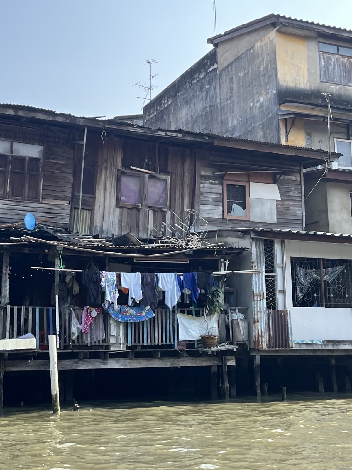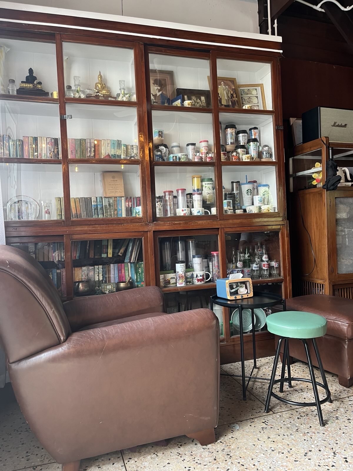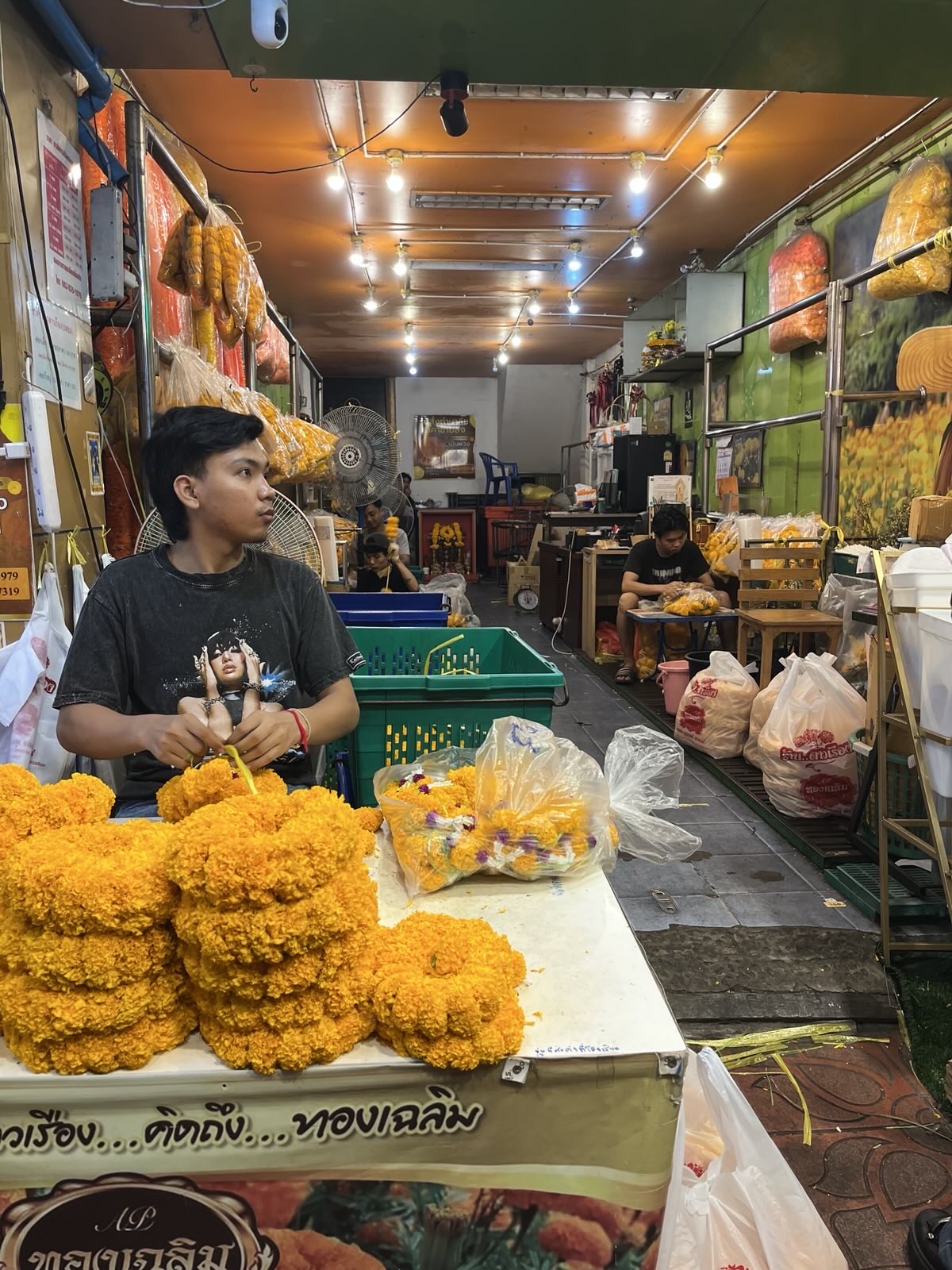 Heute Morgen mal ohne Tempel. Der Weg führt uns eine viertel Stunde entfernt ins Nang Loeng Viertel und dort auf den Nang Loeng Markt. Die Welt hat 2018 einen schönen Artikel mit der Überschrift In Bangkoks Viertel Nang Loeng findet man noch das alte Thailand veröffentlicht, der uns motiviert, den Markt zu besuchen. Nomen est Omen. Auf dem Weg dahin finden wir eine Apotheke. Der Apotheker verkauft mir einen Streifen Laxoberal. Eine ganze Schachtel wäre ja zu viel für mich. Ein geschäftiges Gewusel, viele Streetfood-Stände, viele freundliche Menschen, aber auch misstrauisch und unfreundlich schauende Frauen. Ist ja nachvollziehbar. Eine alte Frau lächelt uns an und sagt „Guten Morgen“. Freundlicher Augenkontakt, wie mit einigen anderen. An der Ecke ein kleines und herrlich unperfektes Kaffee. Elektronik beim Bezahlen wie im IT-Zentrum, für den ganz großartigen Latte Macchiato braucht es drei Menschen und eine gefühlte Ewigkeit. Das moderne Leben auch in Thailand. Mit allen Ecken und Kanten. Durch die Glastür können wir das Treiben auf dem Markt schön beobachten. In Summe zwei herrliche Stunden hier.
