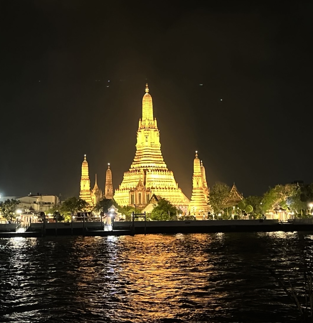 Der Weg zurück an den Nachmittagstempeln vorbei. Irre Beleuchtung. Rechts hinauf der Blick auf den Golden Mount, gigantische Beleuchtung. Vorne an der Kreuzung geht der Punk ab. Motorräder, Roller, TukTuks, im glitzernden Licht der Tempel. Macht Lust auf noch mehr abendliche Spaziergänge.