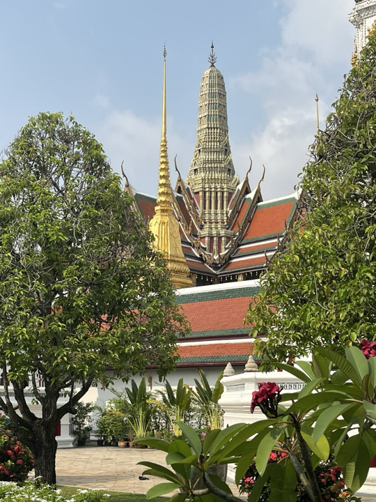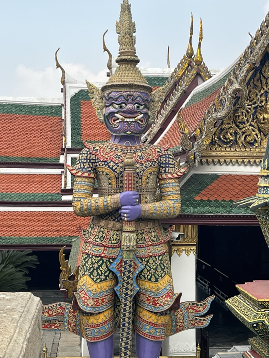 Gefühlte 41 Grad so die Aussage unseres heutigen Guides … und wir kucken Tempel an. Ein rasanter Tag. Geplante Abfahrt mit unserer 10-Personengruppe bei den Robinson Warehouses in der Sukhumvit Road. Knappe 10 Kilometer, keine 20 Minuten jetzt am Abend. Um 8:50 steht das Grab-Taxi bereit. Es sollte reichen. Der nicht mehr ganz junge Fahrer fährt los, pfeift sich ein Liedchen, wir verfolgen sein Navi. Aha, jetzt also der Bangkoker Stau. Es stockt ein wenig, er macht auf smart und biegt links ein. Nach ein paar Metern Komplettstillstand. Und das bleibt auch so. Die Zeit tickt. Irgendwie verstehen wir, dass der Skytrain in der Nähe sei und wir mit einem Motorradtaxi weiterkämen. Blick auf GOOGLE, wir laufen zu U-Bahn. Die Fahrt bis hierher bezeichnet der Fahrer als „free“, natürlich bekommt er etwas. Strammen Schrittes Richtung Skytrain, Ticket gekauft, in den ersten ankommenden Wagen reingepresst, auch wenn schon knackevoll. Die Bahn fährt entsetzlich langsam. Noch 15 Minuten, bevor unsere Tour losfahren soll. Nach fünf Stationen runter zum vereinbarten Treffpunkt. Noch drei Minuten! Relativ pünktlich fahren wir los. Erster spannender Teil des Tages geschafft. Wir heben den Altersdurchschnitt der Minivan-Besatzung deutlich. Acht Mitreisende, ein Holländer, zwei Engländer, zwei Amerikanerinnen und drei Belgierinnen, eine davon sitzt neben mir … und stinkt wie ein Moschusochse. Wir fahren etwa eine Stunde auf einer dreispurigen Autobahn nach Norden. Unser Guide Jenny spricht von Countryside. Nichts Grünes, nur Industriegebiet. Erster Stopp ist der königliche Palast in Ayutthaya. Die Vorstellung, hier auf dem Land zu sein ist reichlich illusorisch. Eine bebaute Fläche von Bangkok bis hierher. Das riesige Gelände beherbergt thailändische, europäische und chinesische Bauten. Der 72 Jahre alte König lebt ja einen Teil des Jahres am Starnberger See und läßt auch auf dem Viktualienmarkt einkaufen.