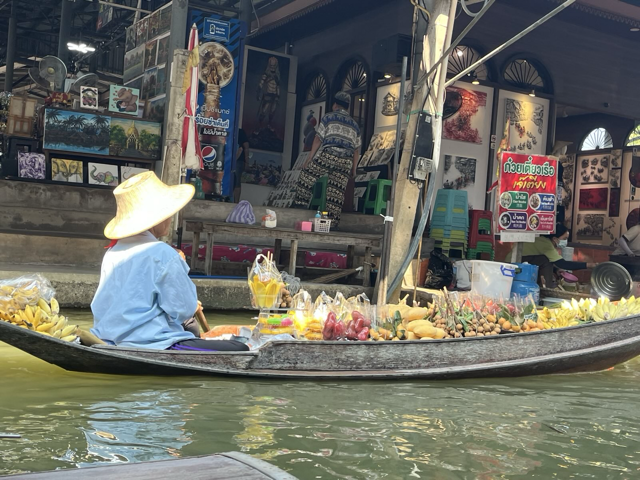 Nächster Halt der schwimmende Markt von Ayutthaya mit Bootsfahrt und selbst organisiertem Mittagessen. Sehr lecker. Außerdem komme ich zu meiner kurzen Muai Thai Kampfvorführung. Es ist krachend heiß und die Männer kämpfen mit Schwertern und Körpern. Nicht für Ausländer. Das geschieht für die Thai. Weiter zu zwei Tempeln (Wat Mahathat und Wat Phra Sri Sanphet). Nicht so ganz in Stand gesetzt wie in Angkor Wat. Dennoch sehenswert. Egal, bei den genannten gefühlten 41 Grad sind wir eh durch. Viele kleine Mönche, die ihre ihre Schulferien bei den Buddhisten verbringen dürfen, geben ein interessantes Bild ab. Utes Gespräch mit einer Österreicherin - beide sind platt.