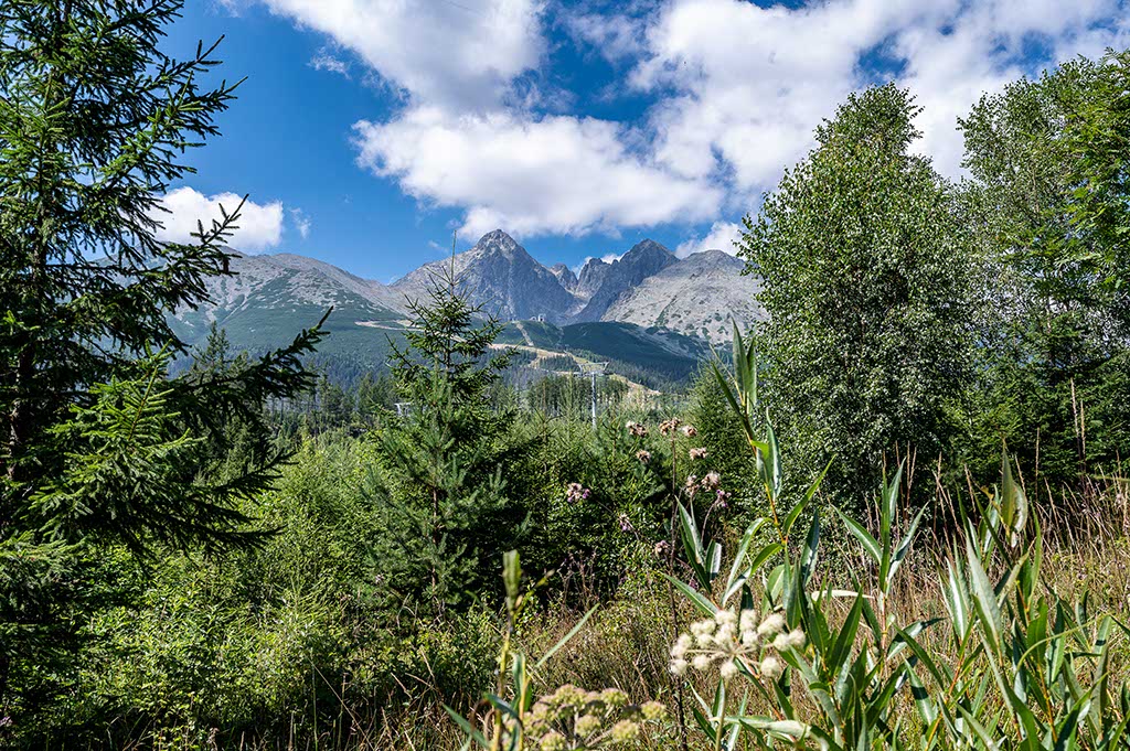 Der Beschluss heute ist ein Spaziergang zur Talstation der Seilbahn, um auf den Lomnicer Sattel zu fahren. Der Parkplatz an der Bahn gleicht den Plätzen in Österreich, Italien, Deutschland egal wo immer Seilbahnen gehen. Er ist krachend voll, an der Kasse eine kleine Schlange, viel zu viel. So geht es eben zu Fuß, was eh gesünder ist, auf dem Wanderweg, der gleichzeitig die Kartbahn darstellt, hinauf zur Mittelstation. Gemütliche 300 Höhenmeter und knapp vier Kilometer später ist die Mittelstation erreicht. Weiter Ausblick, einigermaßen wenig los. Die passende Wanderung unter herrlichen Bergen zum Abschluß.