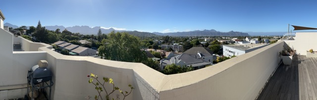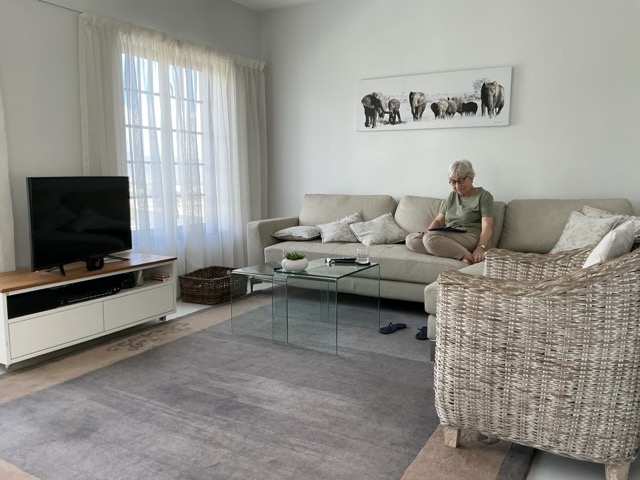 Etwas geflasht machen wir Feierabend. Ein traumhafter, wenn auch anstrengender Tag geht zu Ende. Der Flug ganz ok, die Crew sehr freundlich und fix - ja, in der Lufthansa, mit der wir immer beste Erfahrungen gemacht haben. Viel geschlafen haben wir nicht. Dazu fehlt der Platz. Egal. Nach 11 Stunden Direktflug touch down um 7:00 in Kapstadt. Wir sind beinahe etwas enttäuscht. Es fehlt der intensive Geruch nach der roten Erde um Johannesburg, für uns immer ein Zeichen, dass die zweite Heimat erreicht ist. Ging dann ganz schnell, das Wetter mit 26 Grad traumhaft, blauer Himmel, Blick auf die Berge. Der Flughafen eher klein. Wir sind schnell durch die Immigration. Unser Visum extra erfasst. Koffer da, raus zum Vodaphone Stand, SIM Karte mit ein paar Hemmnissen beschafft, immerhin begrüßt mich der Verkäufer mit welcome back home. Auf meine Fragezeichen im Gesicht, meint er nur: „ Your accent just changed to South African“. Ab zum Europcar. Der Mann am Counter meinte nur, ach Ihr seid Deutsche. Dann bekommt Ihr ein deutsches Auto - einen VW. Da scherze ich mit meiner BMW Historie, will er mir glatt einen BMW geben. Abgelehnt, ist mir zu auffällig. Und los geht’s auf die N2, vorbei an Khayelitsha, auf 500.000 bis 2,5 Millionen Bewohner geschätztes Township. Bloß nicht reingeraten, das könnte heftig werden. Kurz darauf sind wir in Somerset West und treffen vor der kleinen Wohnanlage unsere Vermieterin, Walle Hartmann. Sympathische Frau in ihren Siebzigern, Achtzigern, auf jeden Fall topfit. Wir betreten die Wohnung und sind gleich schockverliebt. Lassen wir das erst einmal einfach wirken.